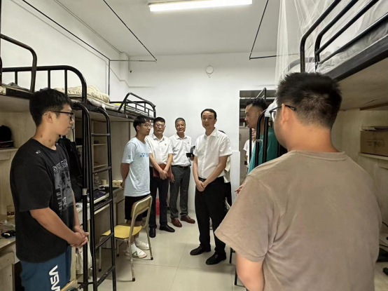 心系新生,关怀入舍。2023年9月12日下午,温州大学党委书记张健老师、党校办主任蔡联群老师、党校办副主任陈赞安老师、学工部副部长张朝辉老师一行人深入学生宿舍,了解2023级机械研究生新生的学习生活情况,学院党委书记周荣老师、副书记黄玮老师陪同看望。